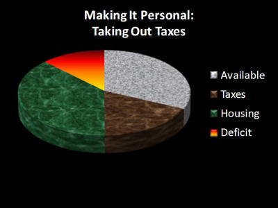 This idea of living within our means –whether we want to or not – is radical stuff, but it could be happening fairly soon given the current global economic situation. As we explored in more detail in the companion article / video, "A Plunging Standard of Living (Crisis & Globalization I)", when we divide a $700 billion trade deficit by 111 million US households, the shortfall between what we produce and what we consume comes to about $6,300 per average family. As the median US income is $50,000 per household, this means that an average of 12% of the national standard of living consists of goods and services that we don’t produce enough to pay for, and are supplied effectively on credit by the rest of the world. When we adjust out taxes and the cost of housing, for a loose measure of discretionary income, that means that for the median household about 28% of what we think of as our standard of living is arguably based upon other nations propping up the dollar, manipulating currency values so that effectively American jobs have gone overseas.